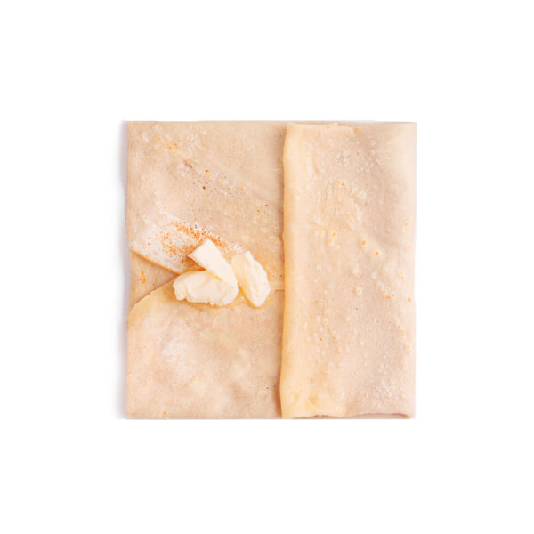 Тесто, соус сливочно-чесночный, буженина, брынза, жаренные шампиньоны