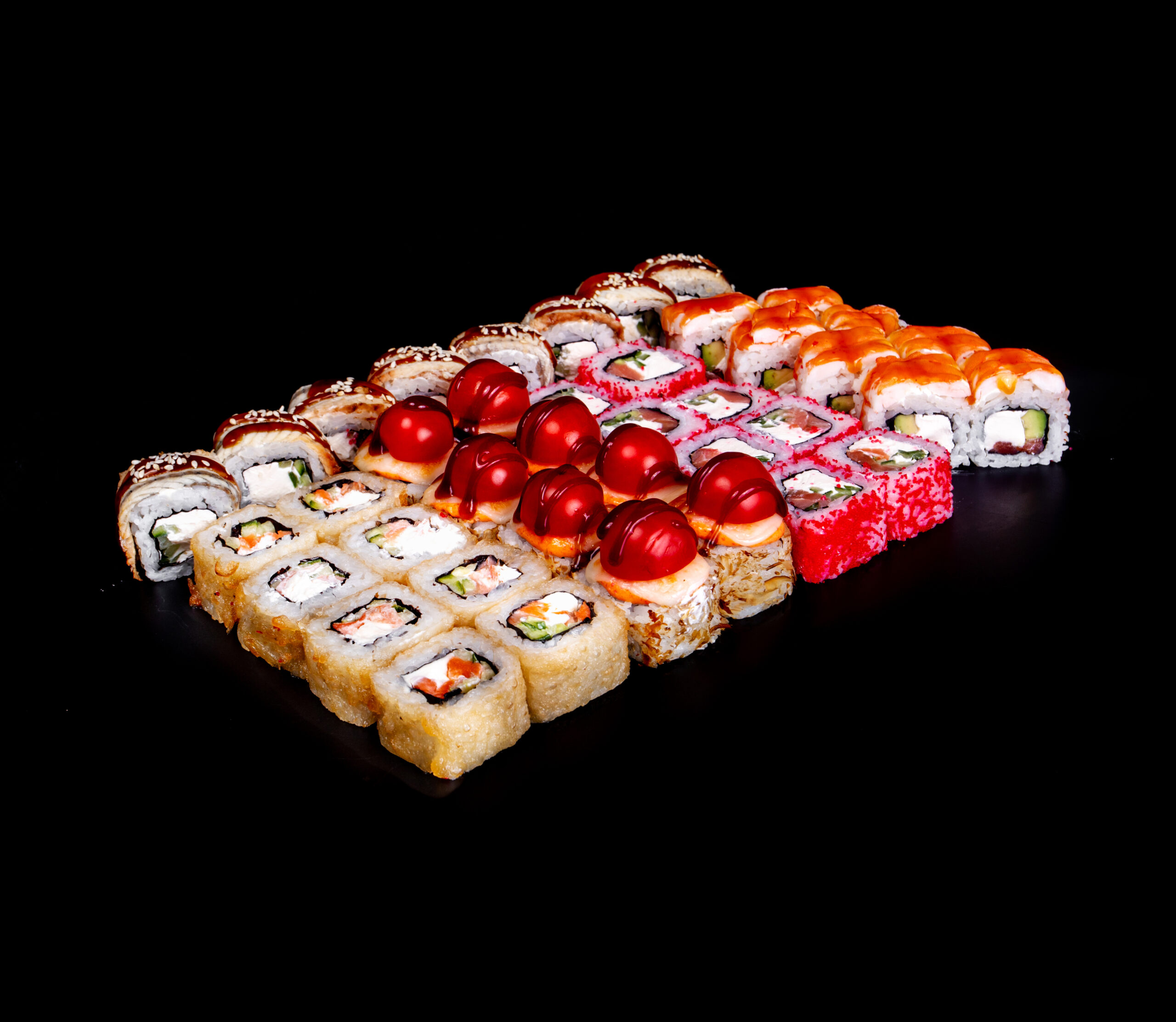 Филадельфия с угрем, Ролл с лососем и сливочным сыром, Запеченный сенсей, Эби чизу маки, Ролл Аляска